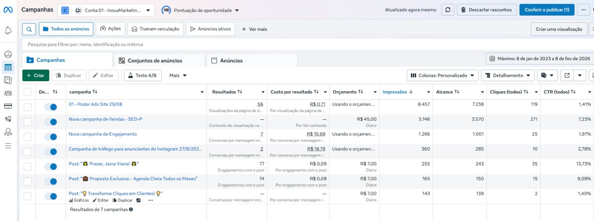 Criamos campanhas focadas em ROI, não em métricas de vaidade.